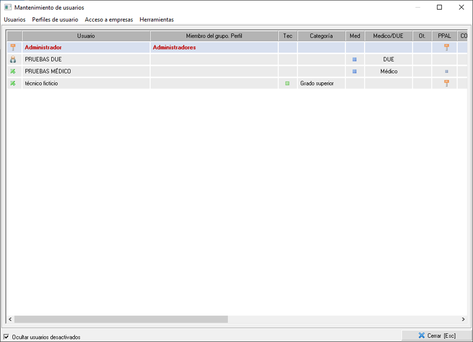 Tanto el personal técnico como el personal sanitario van a ser usuarios de Prevengos, por lo que al dar de alta un usuario en Prevengos, hay que configurarlos correctamente para que después no tengamos problemas en la generación y comunicación de la memoria.