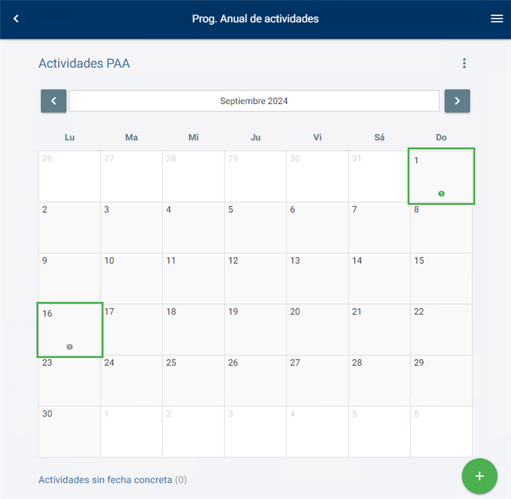 - Por último, resaltado en verde, visualizarán el listado de actividades incluidas en el PAA que hayan seleccionado en la parte superior.