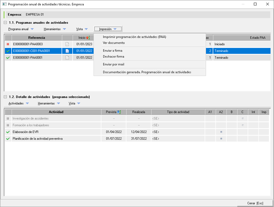 2. Imprimir programación de actividades (PAA)