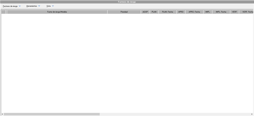 Dentro de este apartado así como el siguiente vamos a tratar la parte de factores de riesgo y la planificación de medidas correctores/preventivas asociadas a los mismos. Disponemos de manuales que explican con más profundidad estos apartados, por lo que si tienen dudas pueden consultarlo dentro de este apartado