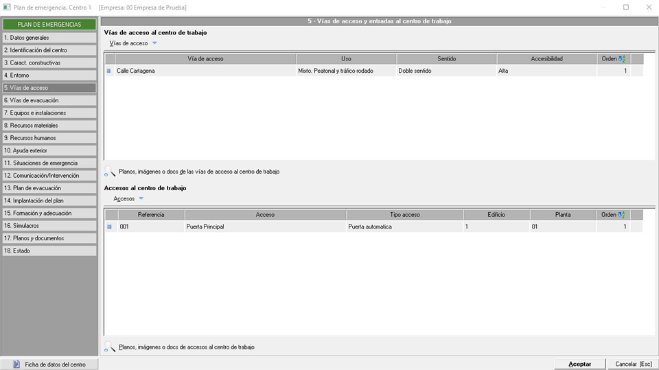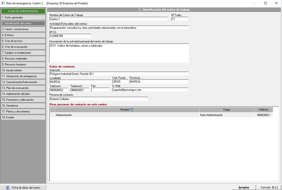 Esta pestaña, la segunda que encontramos dentro del formulario del plan de emergencias/autoprotección, tiene un aspecto similar al de la siguiente captura: