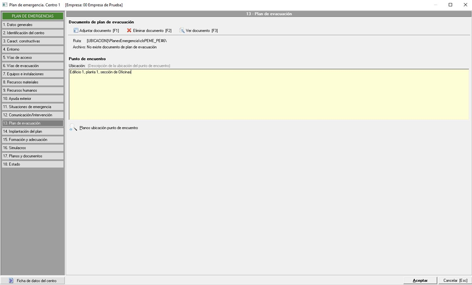 En esta pestaña vamos a poder adjuntar el documento relacionado con el plan de evacuación