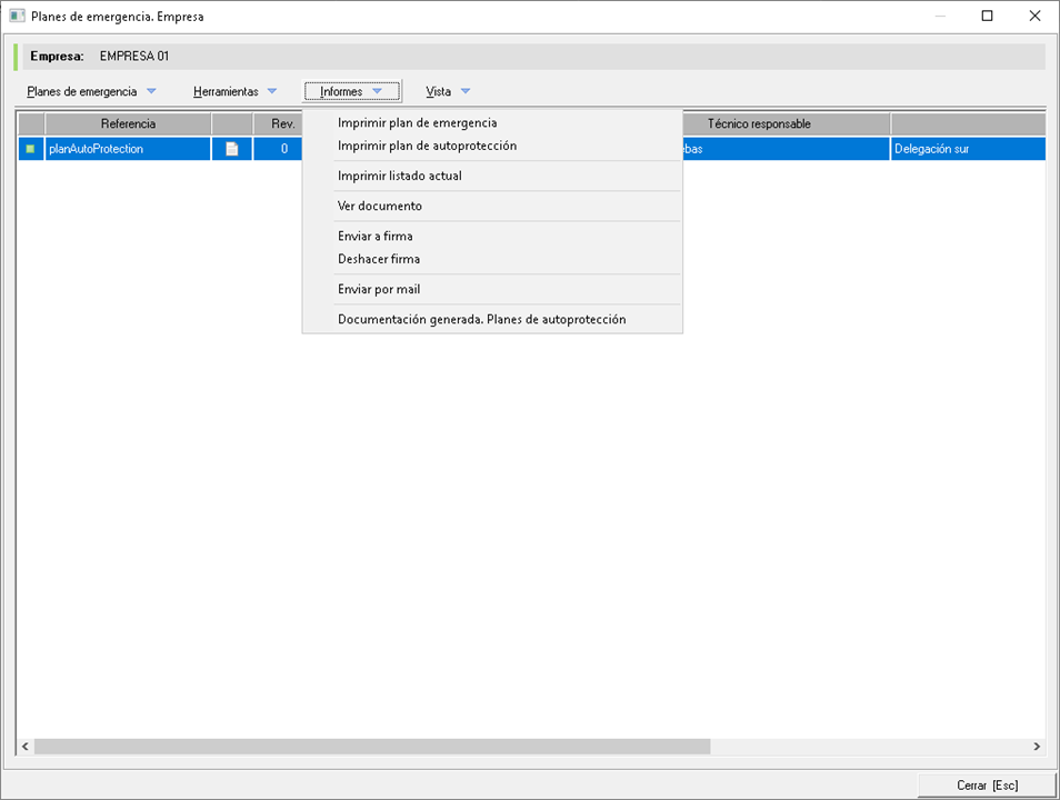 3. Imprimir plan de autoprotección de los elementos seleccionados