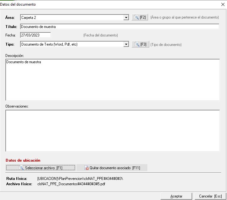 Debemos de tener en cuenta que al imprimir el documento del plan de prevención (podemos ver el manual aquí), tenemos la posibilidad de indicar que se inserten los documentos adjuntos en esta pestaña, por lo que se insertaran todos los existentes, no pudiendo discriminar aquellos que queremos/no queremos incluir.