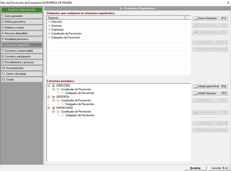- Eliminar elementos del organigrama seleccionados [F3]: Con esta última opción eliminamos aquellos elementos que tengamos seleccionados del listado que tenemos en pantalla.