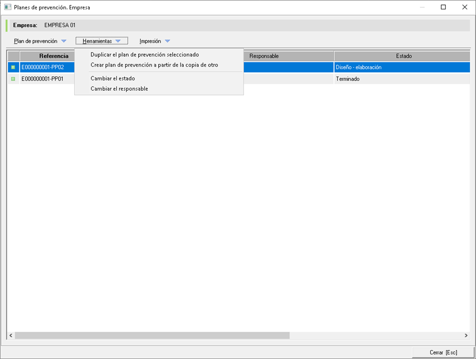 Con esta herramienta podemos cambiar este campo a todos los planes de Prevención que tengamos seleccionado, evitando así la necesidad de abrir uno a uno con el fin de cambiar este dato.