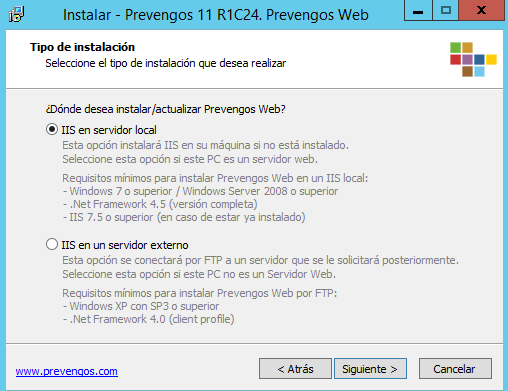 En el siguiente apartado del manual se detallan los pasos a seguir en la instalacion de los portales Web de Prevengos. Dado que los asistentes de instalacion de cada uno de los portales son identicos, vamos a mostrar los pasos seguidos en la instalacion del Portal Web principal y en caso de querer instalar cualquiera de ellos podremos seguir este manual prestando atencion a las anotaciones indicadas.