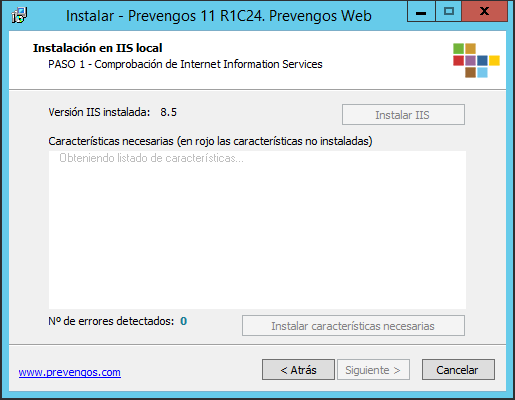 La instalación comprueba si se encuentra instalado el servidor IIS en la máquina. En caso de que IIS no se encuentre instalado, lo instalará, así como las características necesarias para su correcto funcionamiento.