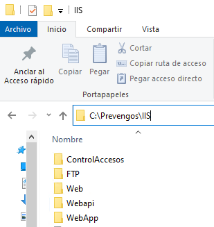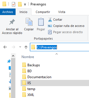 - Ejemplo: C:\Prevengos\IIS