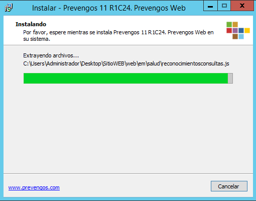 iniciando la copia de ficheros y actualización del servicio (importante que no tengamos abierto Prevengos en el equipo). Una vez terminado el proceso de actualización podemos cerrar el asistente haciendo clic en Finalizar.