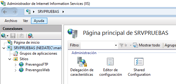 Una vez creado el usuario, accedemos a nuestra estructura de carpetas de PREVENGOS y creamos una carpeta llamada IIS.