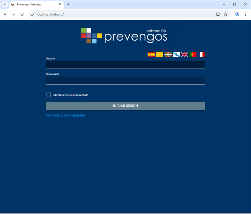 Para comprobar el correcto funcionamiento de las diferentes Webs de Prevengos accederemos al navegador del equipo donde se han instalado y en la barra de búsqueda introduciremos una de las siguientes direcciones dependiendo a cuál queramos acceder: