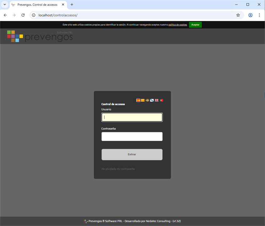 - Web Control Accesos en local: localhost/controlaccesos