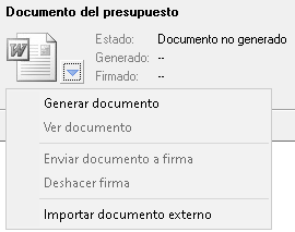- Fase/situación. Permite establecer, bajo criterio del Servicio de prevención, cual es el estado del presupuesto desde su registro a su firma.