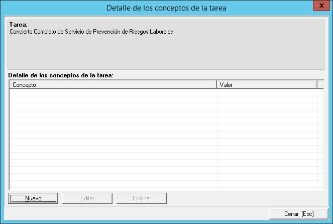 Los conceptos sólo se incluirán en la impresión del contrato si marcan la casilla “Detallar conceptos de las tareas en los listados”.