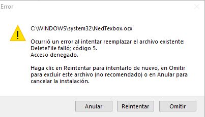 El motivo por el que se nos muestra este error es porque el puesto de trabajo está abierto (en ejecución) por lo que existen ficheros en uso que no pueden ser sobrescritos. La solución pasa por cerrar el puesto de trabajo y volver a lanzar la actualización (o pulsar sobre el botón "Reintentar").