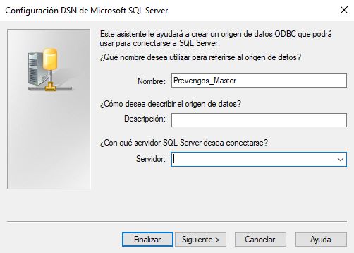 Lo más posible es que no conozcamos los datos y tengamos que preguntárselo al informático, en todo caso y a modo de ejemplo, si nuestro servidor se llama SERVIDOR y tiene la IP 192.168.1.2 con una instancia llamada PREVENGOS, tendríamos que ponerlo de una de estas 2 formas: