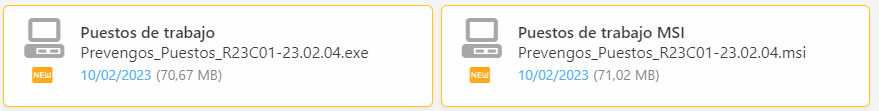 - EXE. Es la versión normal, con su asistente de instalación y es el que tenemos que usar cuando instalemos un nuevo Puesto de trabajo, ya que es el que instala y registra componentes y configura el acceso de Prevengos