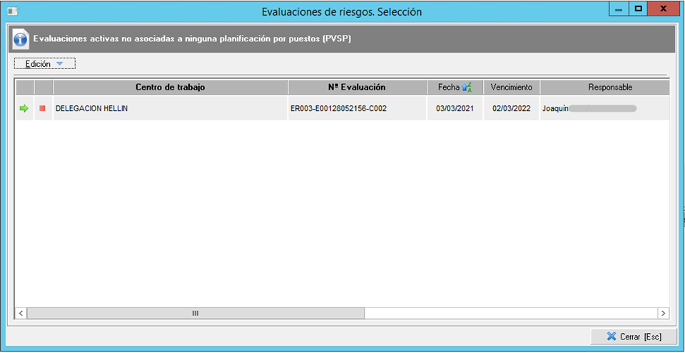Esta opción les mostrará el listado de evaluaciones de seguridad activas y cerradas que todavía no se hayan asociado a ninguna PVSP, de manera que el usuario pueda comprobar si queda alguna evaluación en esta situación.