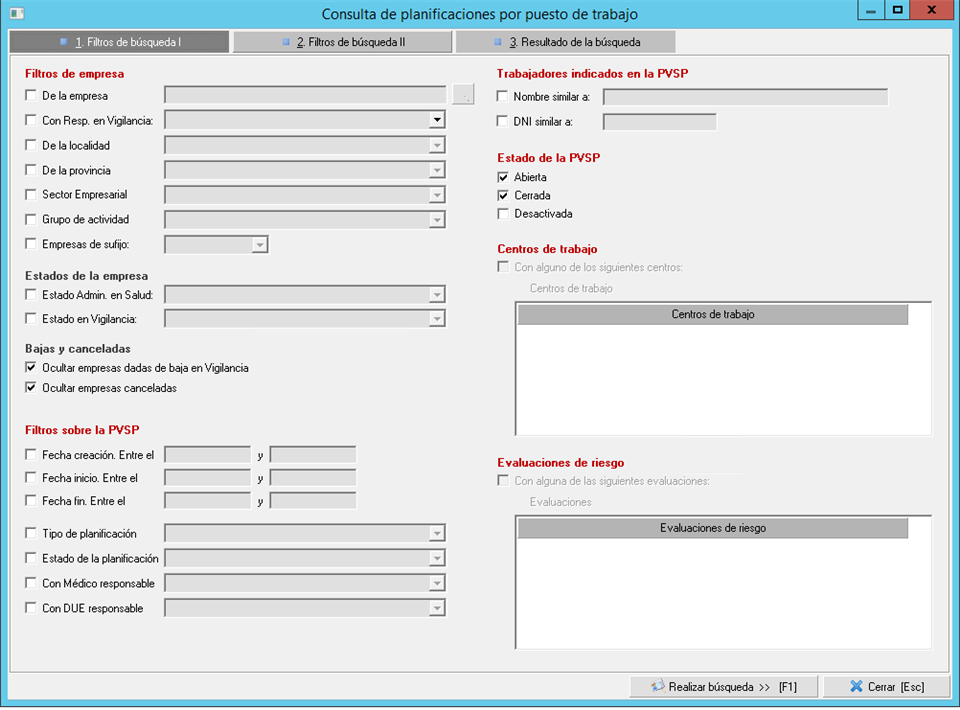 Herramienta con la que el usuario podrá copiar una PVSP de una empresa a otra. Para utilizar esta opción, deberá situarse en la pantalla de 'Planificaciones por puestos' (PVSPs) de la empresa 'destino' en la que quiere crear la nueva planificación. Una vez en esta pantalla, desplegará el menú 'Herramientas' y pulsará sobre la opción 'Crear planificación realizando una copia de otra planificación'. Esta opción les mostrará un buscador de PVSPs, donde el usuario podrá utilizar los filtros disponibles para localizar la PVSP a copiar.