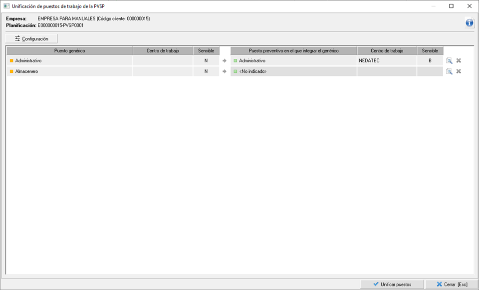En ocasiones, al no estar finalizada la EVR, la PVSP se realiza con los puestos genéricos y, tras la adición de los puestos preventivos, esta herramienta permite la unificación de ambos siguiendo estas indicaciones: