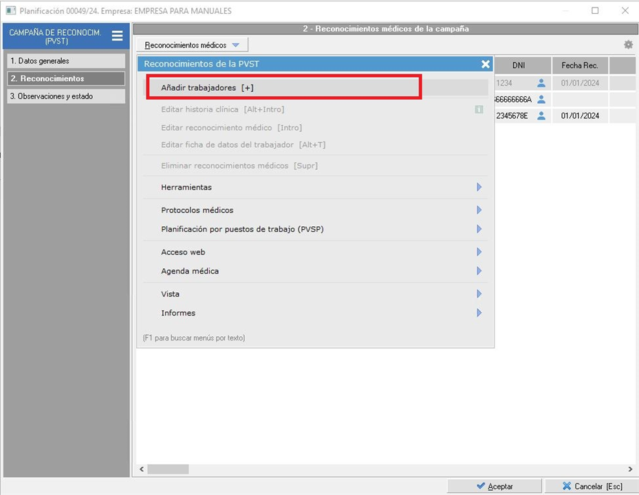 En relación con la incorporación de nuevos reconocimientos (o trabajadores a los que se les hará un reconocimiento), dentro del desplegable