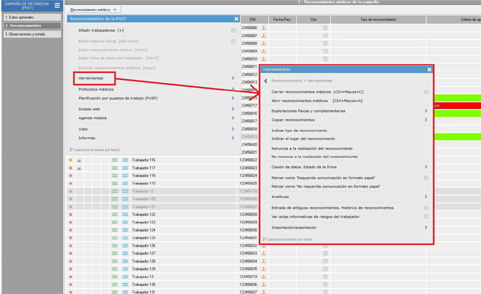A continuación se van a detallar las distintas opciones que encontramos en el apartado 'Herramientas', que nos permitirán editar reconocimientos médicos de forma masiva.