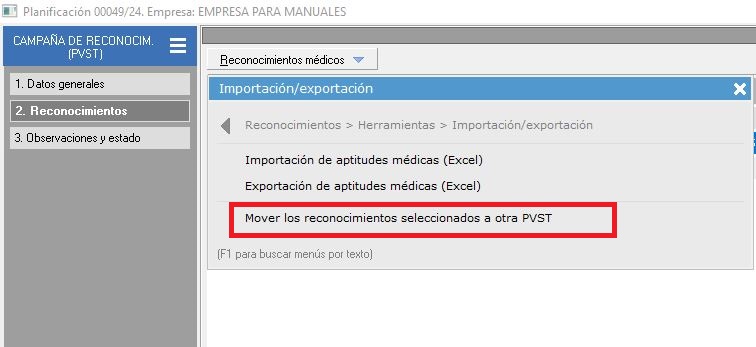 Otra opción que se puede usar para incorporar trabajadores a una PVST es la de 'Mover reconocimientos seleccionados a otra PVST'. Esta opción se encuentra en el desplegable