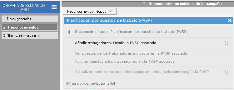 En el caso de que la PVSP asociada a la PVST haya sufrido modificaciones o incluso que esta se haya creado y configurado después de la PVST, tendrán la posibilidad de actualizar los datos de la PVST desde la opción denominada 'Planificación por puestos (PVSP)' que puede encontrar en el desplegable