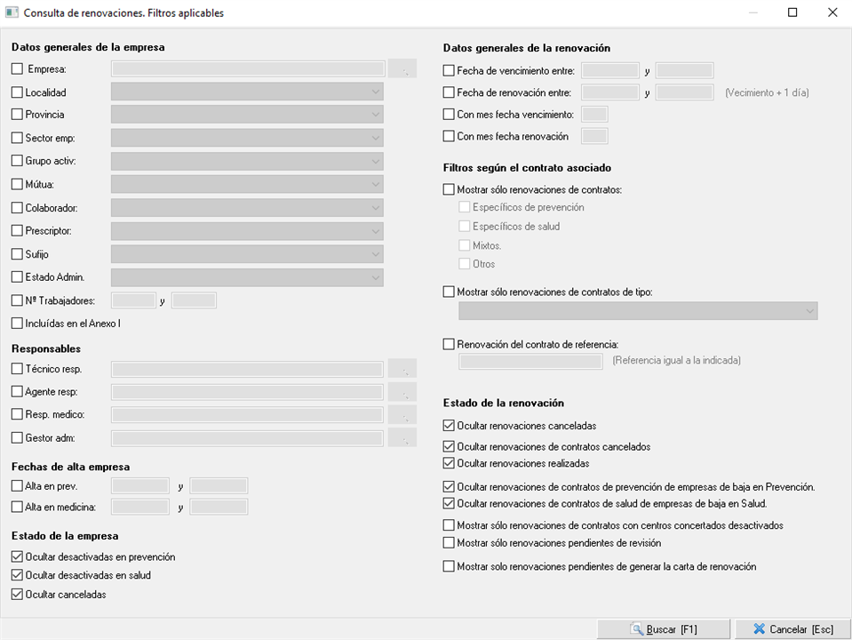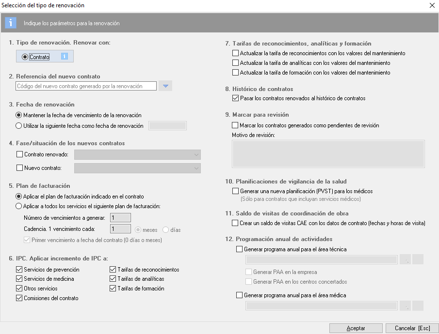 Una vez que pulsamos sobre la opción de "Renovar contratos" accederemos a la pantalla de opciones de renovación que encontramos en la siguiente imagen.
