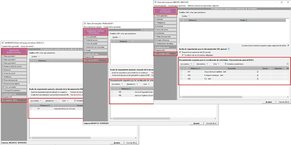 La función principal del módulo de CAE es el control de la documentación que se requiere y aporta a las contratas, para el acceso a los centros de trabajo o proyectos en los que van a participar.