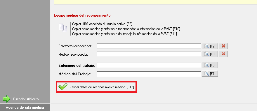 Solo podrá validar el reconocimiento el usuario médico del trabajo.