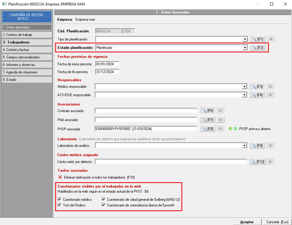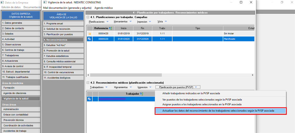 - Planificación de Vigilancia de la Salud por puestos de trabajo (PVSP).