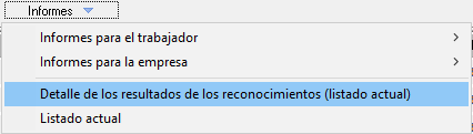 El menú le dará acceso al formulario que le permitirá seleccionar cualquier reconocimiento anterior, independientemente de la empresa en la que se realizó, y con el botón "Editar reconocimiento [F2]" accederá a esa misma pestaña para poder comparar resultados
