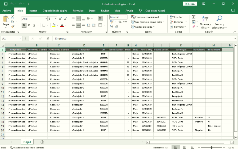 El excel con las estadísticas de las serologías registradas lo podrá imprimir tanto desde la consulta de control serológico, desde la ficha de la empresa o desde la ficha del trabajador.