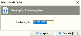 Es muy sencillo ya que simplemente debe seleccionar las serologías que desee y al pinchar en "Herramientas->Indicar fecha de registro" se abre una ventana donde debe indicar la fecha y pulsar aceptar.