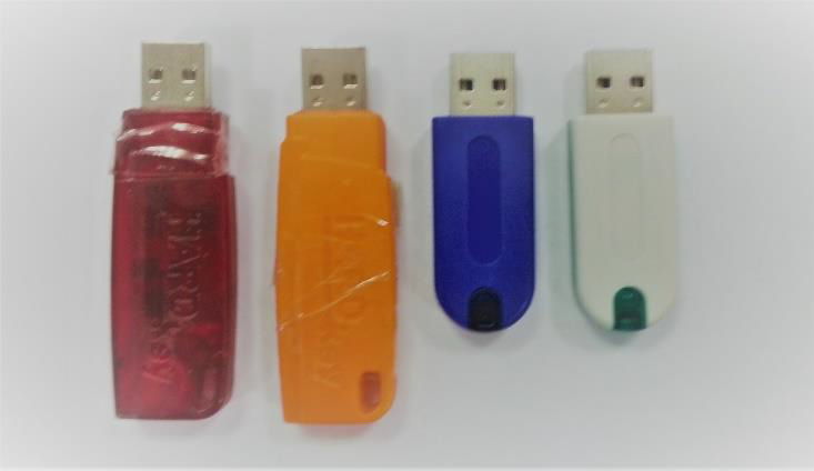 La licencia física consta de un dispositivo USB de color, el color del dispositivo varía según el fabricante que lo provee.