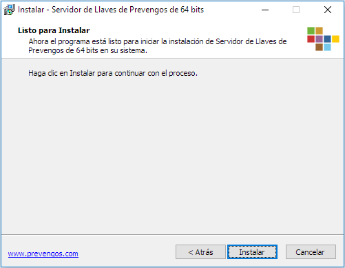 Este es el último paso del asistente de instalación del servidor de llaves, sólo tiene que hacer clic sobre el botón
