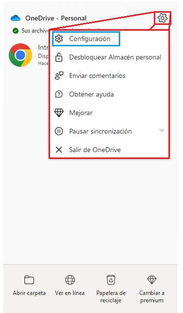 2. En la ventana que se muestra hacemos clic sobre el icono de rueda dentada situado en la parte superior derecha y posteriormente elegimos Configuración haciendo clic, tal y como vemos en la siguiente imagen: