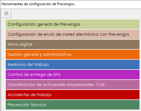 Acceda a esta configuración desde la pantalla principal de Prevengos, menú Configuración > Configuración y personalización: