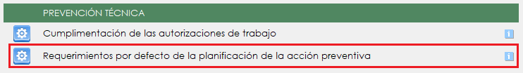 3. Requerimientos por defecto de la planificación de la acción preventiva