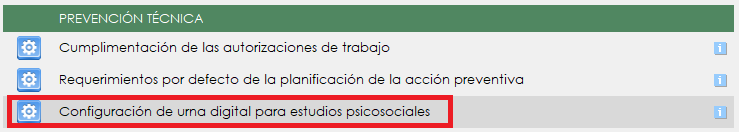 Prevengos dispone de una configuración general de distintos módulos de la aplicación y que afecta en el funcionamiento directo de la misma. Esta guía se centra en la configuración relacionada con el módulo Prevención técnica [TEC].