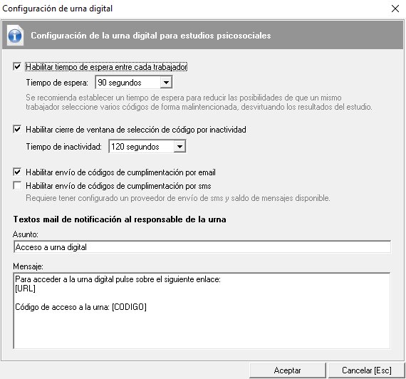 Desde ella podrá gestionar 4 aspectos sobre la urna digital utilizada para la cumplimentación de los estudios psicosociales.