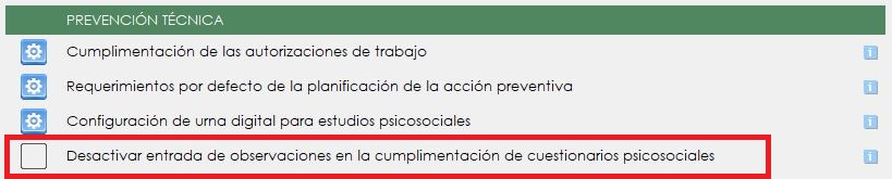 5. Desactivar entrada de observaciones en la cumplimentación de cuestionarios psicosociales