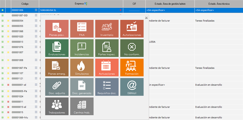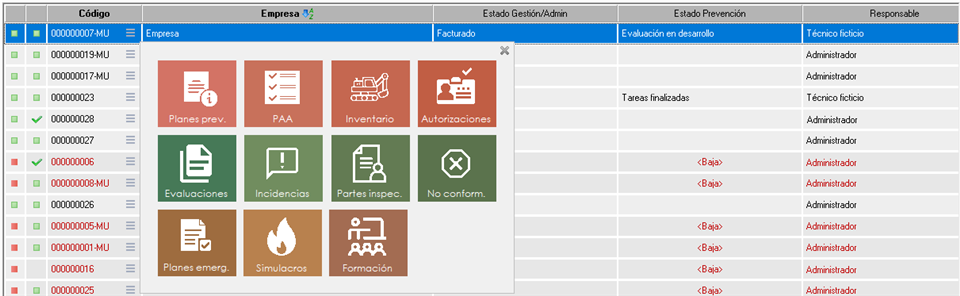 que habilita un menú de acceso directo a los elementos para la gestión de la prevención: