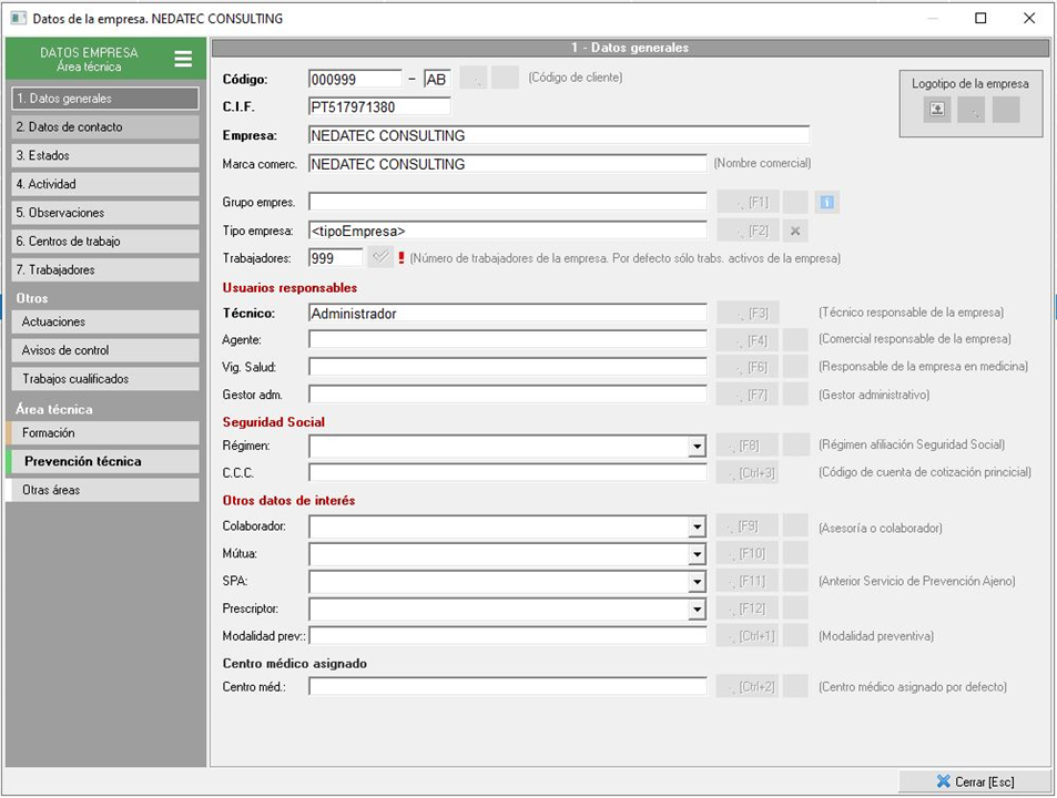 4. Ficha de datos de la empresa en prevención técnica