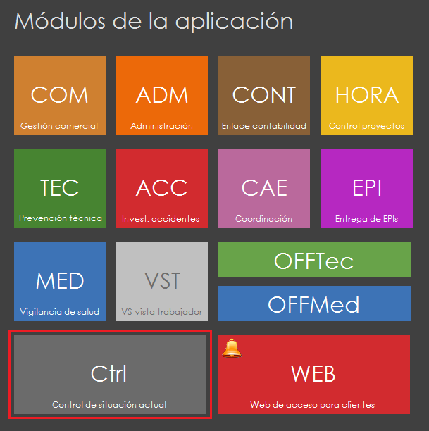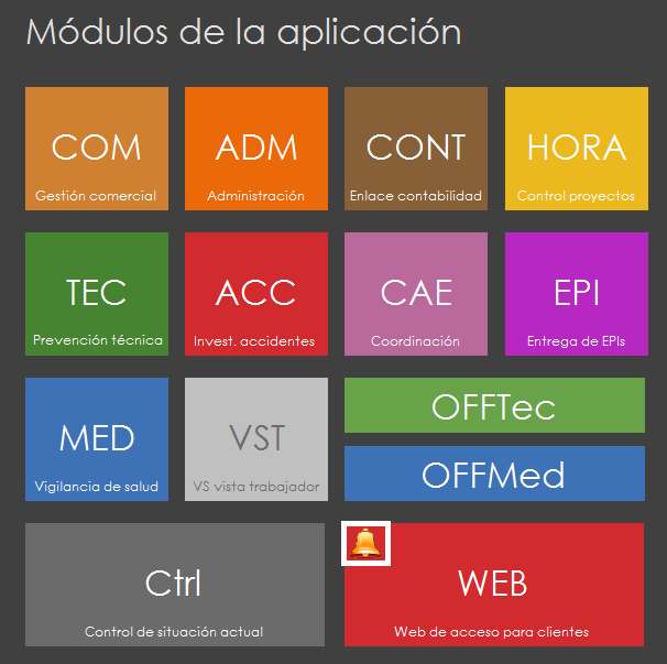 Siempre que un usuario web haya creado o editado datos en la plataforma, aparecerá en la pantalla principal de Prevengos una campana en el acceso del módulo "WEB".