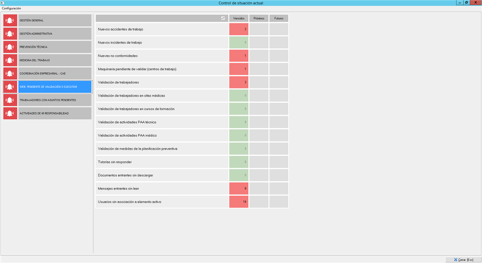 Otra vía para la validación es con la herramienta "Control de situación actual"