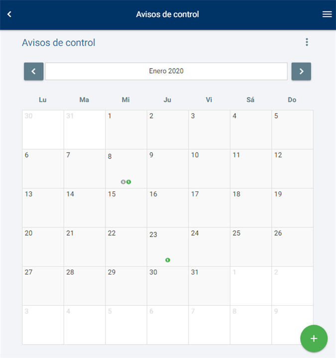 Cuando accedan a los avisos de control, por defecto se mostrará el modo calendario, aunque desde el icono