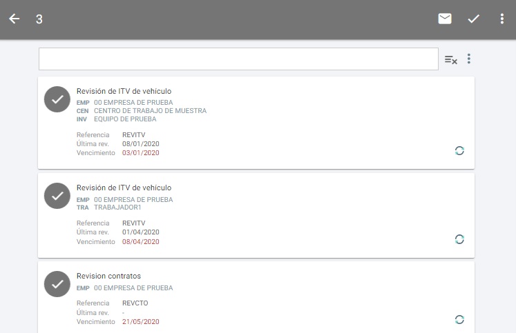 Si pulsan sobre uno de los días del calendario, accederán al listado de avisos programados para ese día. Una vez dentro del listado, pueden acceder a la ficha del aviso de control que quieran gestionar pulsando sobre el mismo.